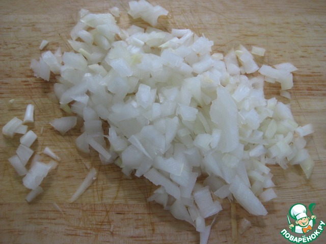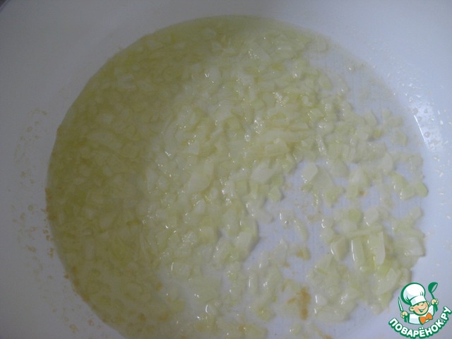В сковороде с толстым дном разогреть 2 ст. ложки сливочного масла, на медленном огне обжарить лук 3 минуты, добавить 3 ст. ложки горячего бульона и на медленном огне потушить 10 минут.