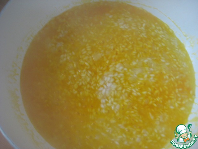 Бульон овощной должен быть горячим ( я варю его из лука, морковки и сельдерея).