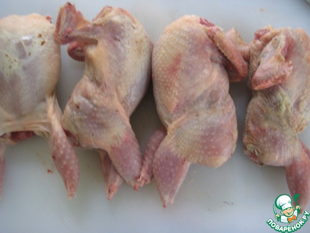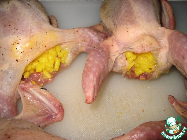Перепелок помыть, обсушить бумажным полотенцем, поперчить.