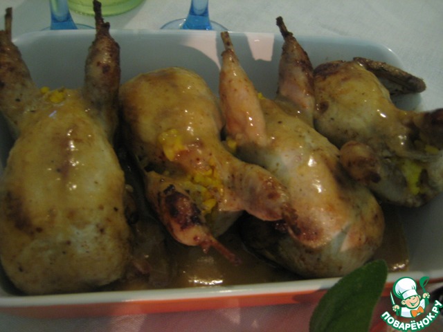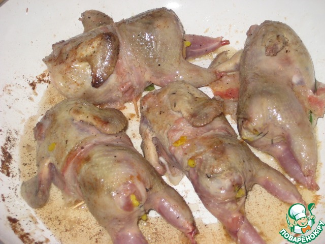 На широкой сковороде с толстым дном (широкая-чтоб влезли все перепелки в один слой) разогреть 2 ст. ложки сливочного масла, обжарить перепелок до золотистого цвета.