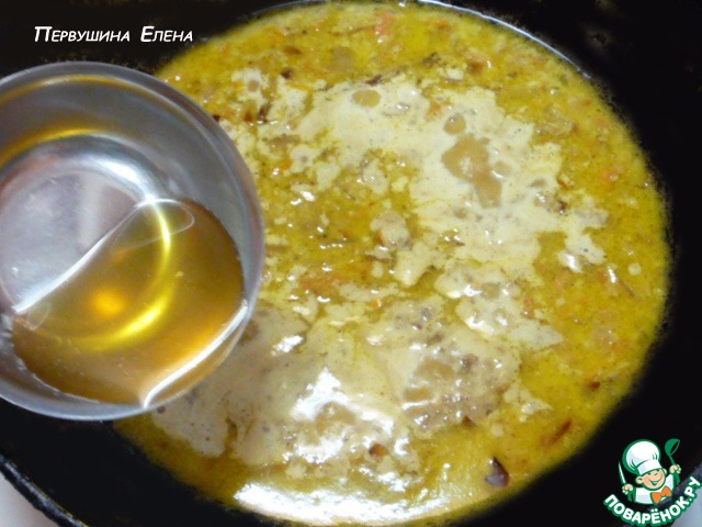 и воду (у меня она уже приправленная специями). Перемешиваем.