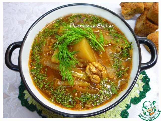 | Борщ получается очень вкусным и ароматным, с легким ореховым вкусом! |