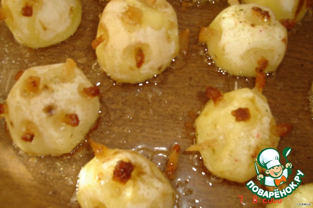 все отверстия заполнили кусочками сала(получились "ёжики")