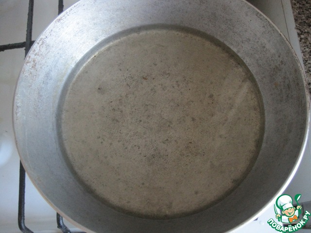 В сухee с толстым дном сковороду налейте масло и прогрейте его на сильном огне около 10 мин. (тогда над маслом обычно появляется легкий дымок)