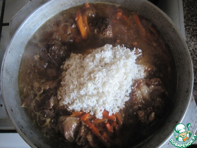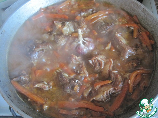 Добавляем пряности. Зирвак – мясная основа плова готов.
