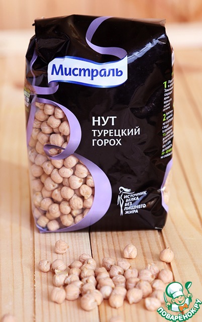 Для начала нам понадобится приготовить нут. На ночь хамачиваем его в воду, варим как написано на упаковке: кладем в кастрюлю с водой в соотношении 1:5, доводим до кипения, варим 10 минут, за тем на слабом огне варим еще 50-60 минут.