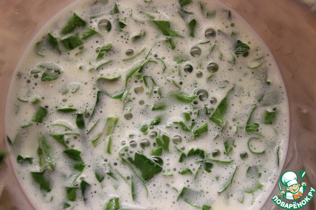 Параллельно готовлю "болтушку" из яиц, сливок, сахара, соли, измельченной зелени петрушки и масла можжевельника.