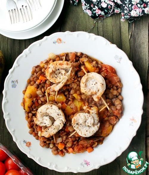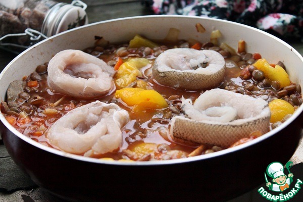 Рыба с чечевицей и овощами
