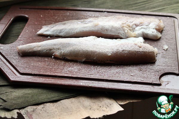 Тушку рыбы разделать на филе, в данном случае я готовлю хек. Подойдёт любая рыба без мелких костей