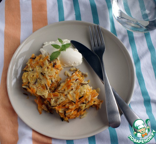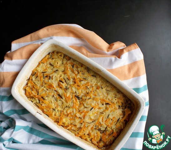 | Эта запеканка называется по-фински Porkkanalaatikko. Оригинал рецепта взят из поваренной книги World Vegetarian Classics (Всемирная вегетарианская классика) Силии Брукс Браун. База для этой запеканки состоит из дикого разваренного риса, тертой моркови и яйца, приправленная медом и мускатным орехом. |
