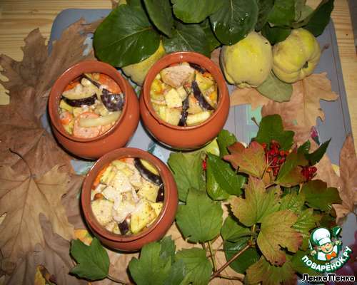 | Название этого рецепта было навеяно осенним дождем. И, возможно, Осеннее танго с блюзом не сочетается, но, я думаю, тоже имеет право на существование. Рецепт придуман мной еще и как попытка использовать в приготовлении блюда с мясом такой осенний южный фрукт, как айва. В конечном итоге эксперимент удался. На конкурс "Осеннее танго" |