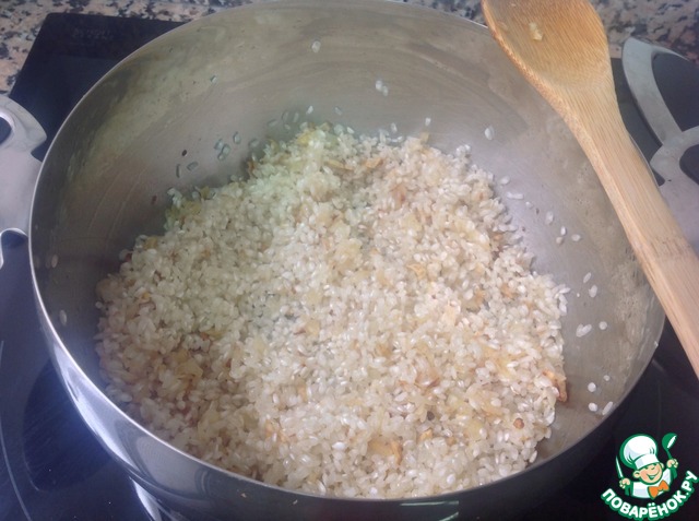 Для приготовления этого блюда я использовала рис Мистраль Кубань, мне нравится, что этот круглый рис впитывает в себя все ароматы и соки при варке
