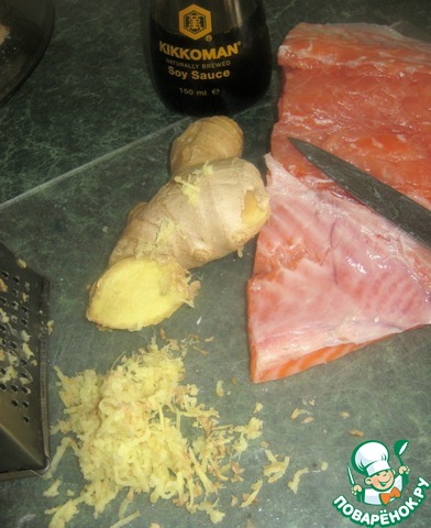 С сёмги снять шкурку, натереть имбирь