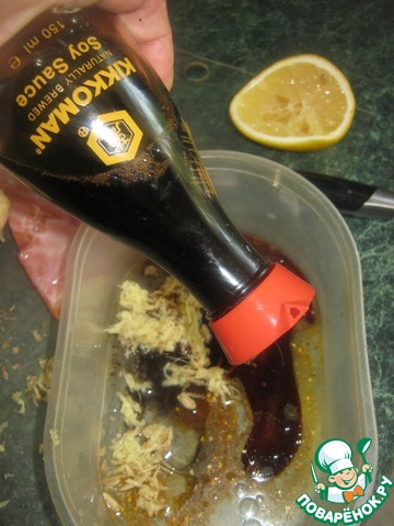 Смешать специи, имбирь, сок лимона, масло и "Мартини" с соевым соусом ТМ "Kikkoman"