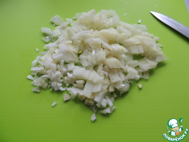 Лук нарезаем некрупными кусочками