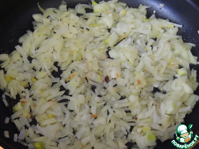 На сковородке с маслом обжариваем слегка лук.