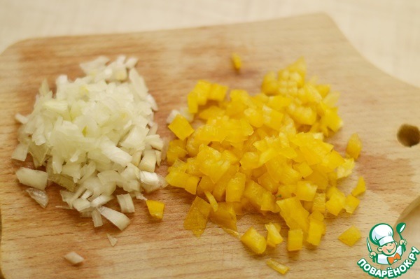 В сковороде разогреть масло и обжарить овощи до светло-золотистого цвета. Добавить овощи к рису.