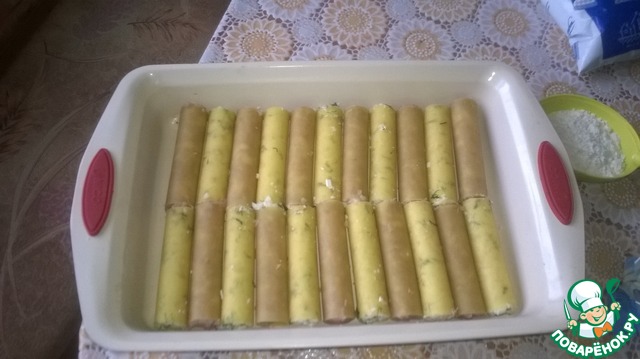Перемешиваем начиненные каннеллони в шахматном порядке.