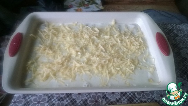 Посыпаем тертым сыром, у меня Гауда, но Вы можете взять любой, по Вашему вкусу.