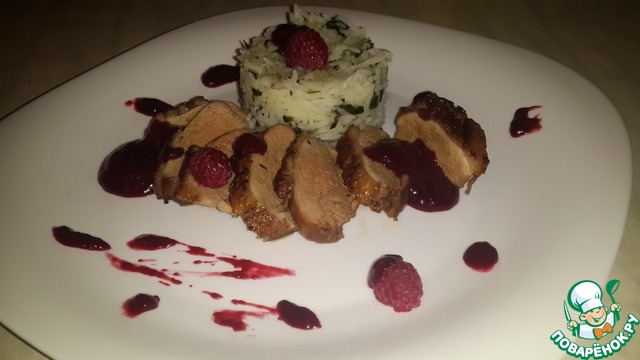 | Поистине шедевр кулинарии. Несомненно нежнейшее мясо утиной грудки и насыщенный малиновый соус порадуют даже самых изысканных гурманов. Вот такой ужин приготовила сегодня любимому мужу. |