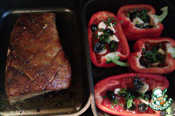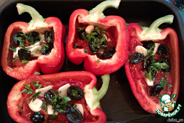 Запекать в духовке при температуре 175-180 градусов примерно 35-40 минут. Зависит от толщины стенок перца.