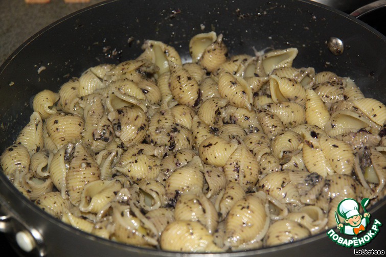 Соединить с пастой томаты и моцареллу. Закрыть крышкой и потушить 2-3 минуты.