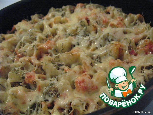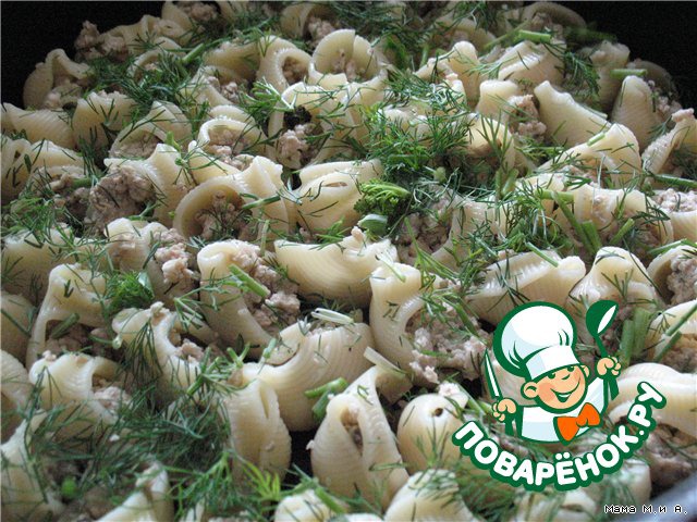 Использовала короткие изогнутые макаронные трубочки, можно использовать крупные ракушки.