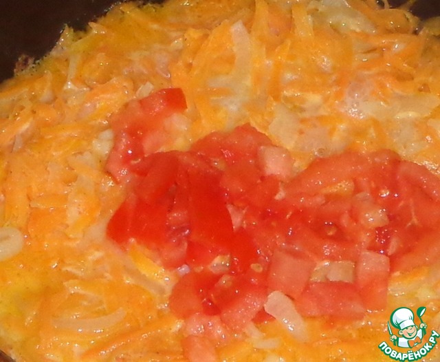 Морковь натереть на крупной терке. Репчатый лук порезать полукольцами.
