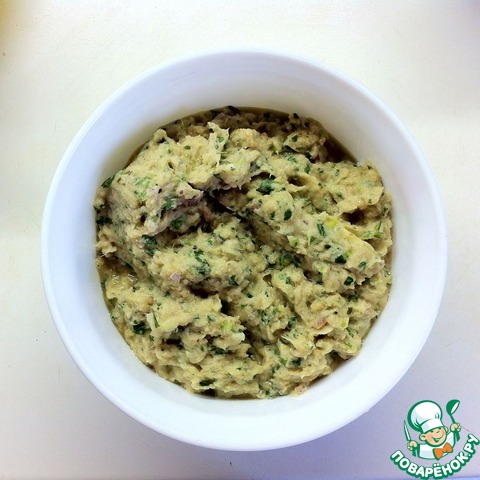 Измельчить в блендере филе трески, кинзу, очищенный имбирь, зеленый лук с крахмалом, яйцом и соевым соусом. Добавить 2-3 ст. л. панировочных сухарей. Досолить по вкусу.
