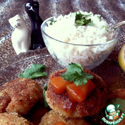 | Очень интересное и приятное сочетание котлеток из белой рыбы с остро-сладким ананасовым чатни. Чатни настолько хорош, что даже просто с отварным рисом получается изумительно вкусное и необычное блюдо. |