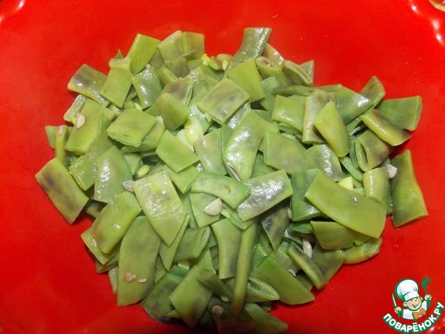 Начнем... Ставим на плиту кастрюльку с водой и пока она будет закипать режем фасоль..