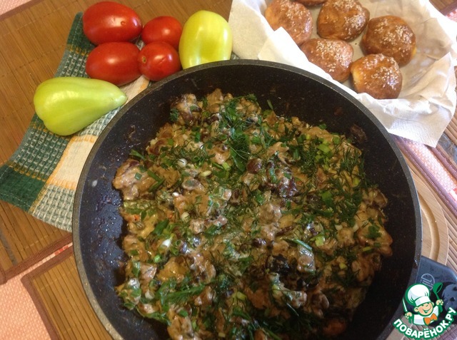 Посыпаем зеленью, закрываем крышкой и тушим 5 минут.