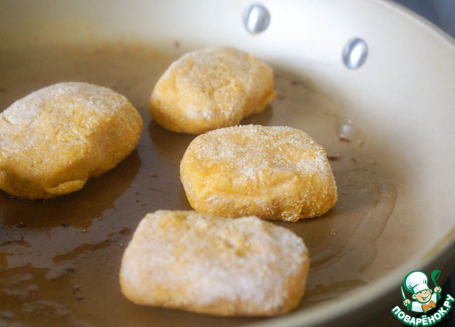 Добавить к пюре панировочные сухари, сформировать аккуратные шарики/палочки/брусо чки, обвалять в сухарях и обжарить на утином жире либо сливочном масле до румяности. Сохранять теплыми.