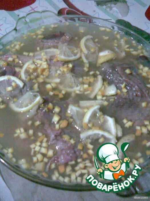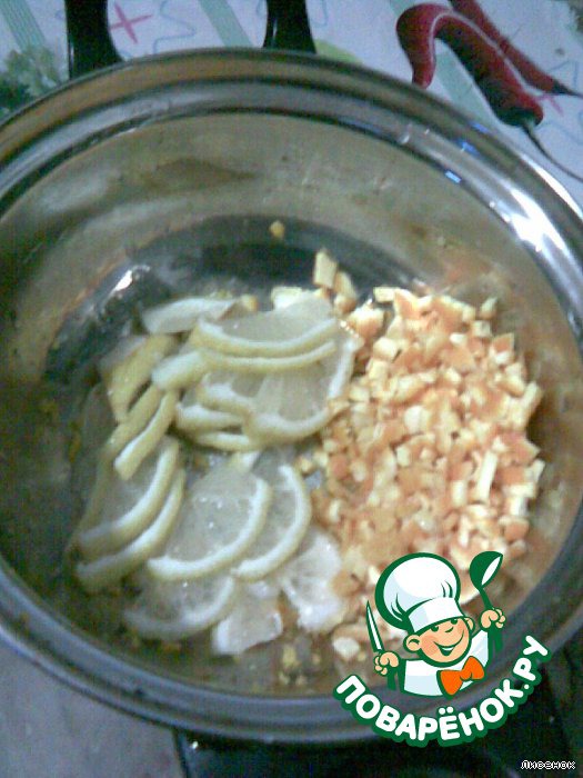 Для заливки смешать все специи, добавить кипяченой воды, вылить к цитрусам.
