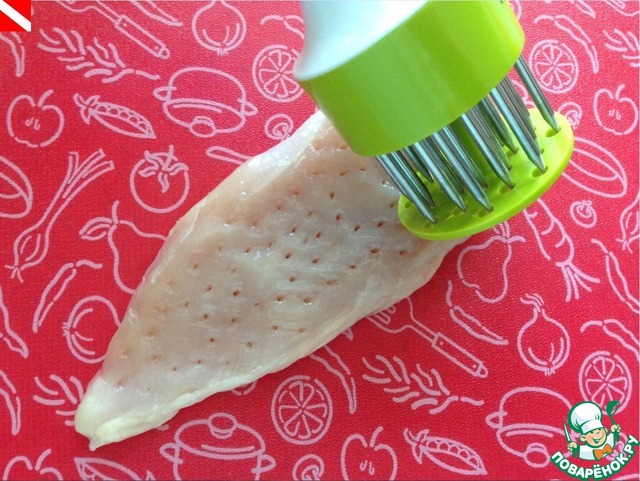 Либо воспользуемся вот таким прибором - тендерайзером. При его применении не изменяется внешний вид мясного куска, но вследствие рыхления соединительных волокон, при тепловой обработке мясо становится мягким и сочным.