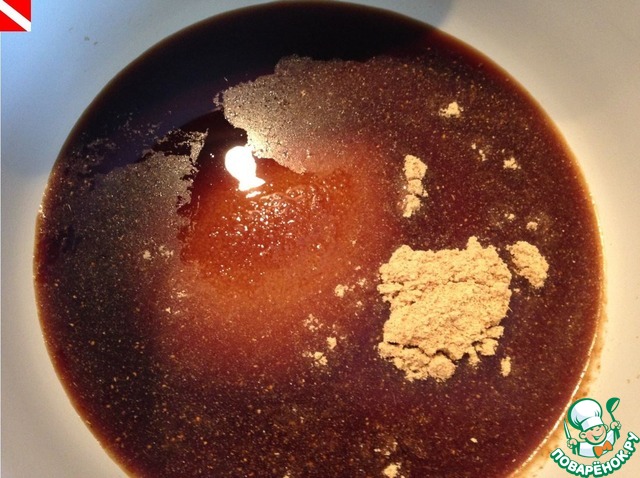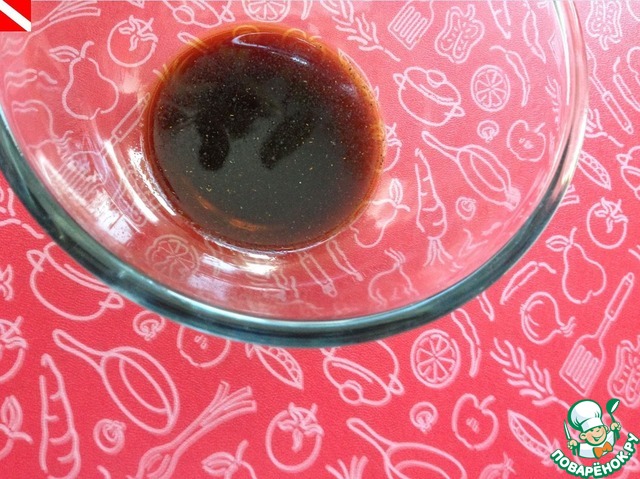 Готовим маринад : смешиваем соевый соус, рисовый уксус и перец чили (по желанию)