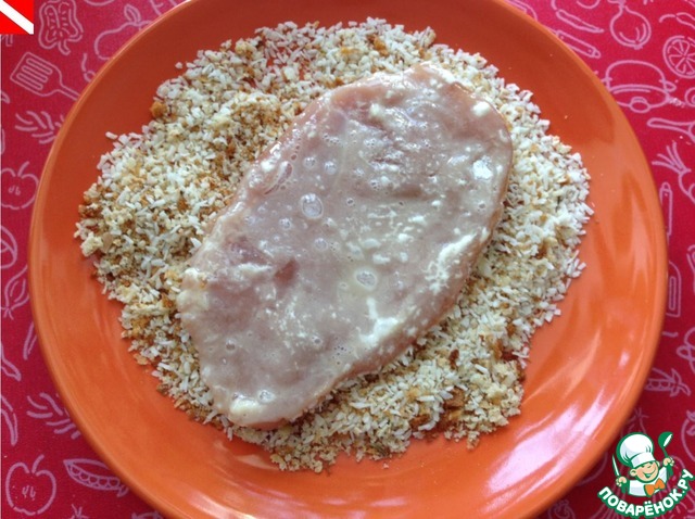 За это время готовим панировку - в равных пропроциях смешиваем кокосовую стружку и панировочные сухари,