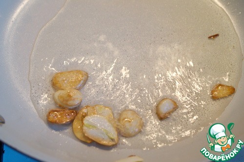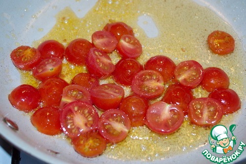 Перекладываем чеснок в чистую посуду, добавляем помидоры ( порезанные половинками)- обжариваем минуты 2.