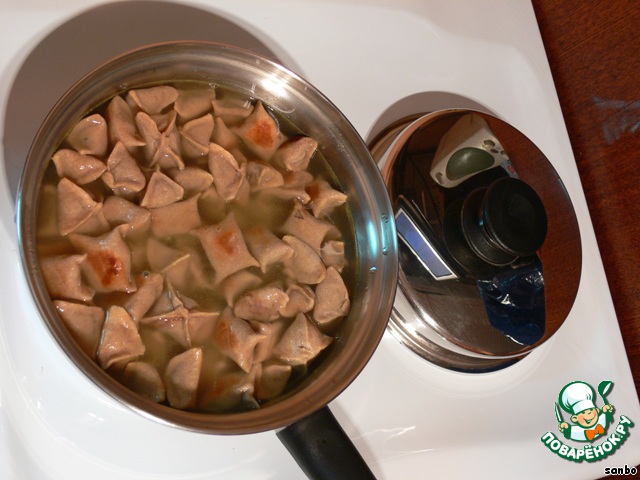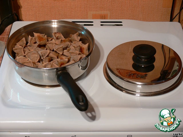 Когда манты подрумянятся - перекладываем их в сковороду.