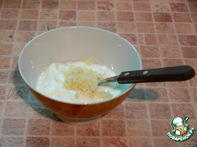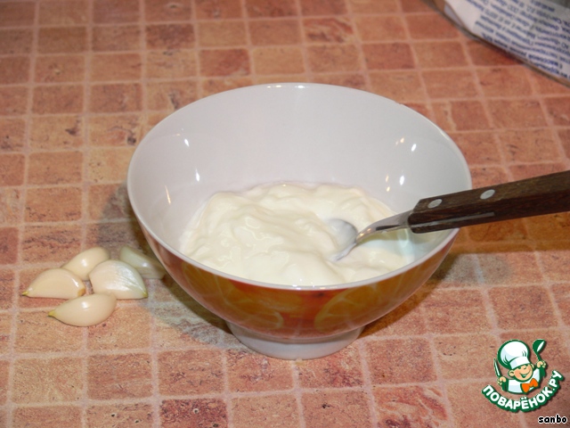 Для соуса потребуются белый йогурт без добавок и чеснок.