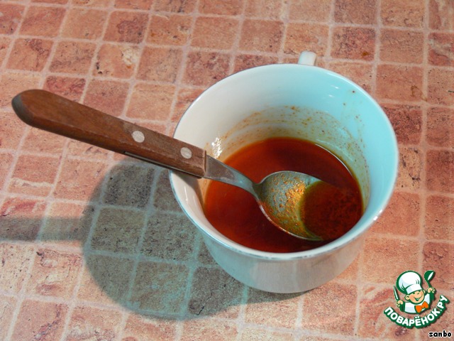 Для заливки растопить сливочное масло, добавить в него сладкую паприку, острый красный перец и перемешать.