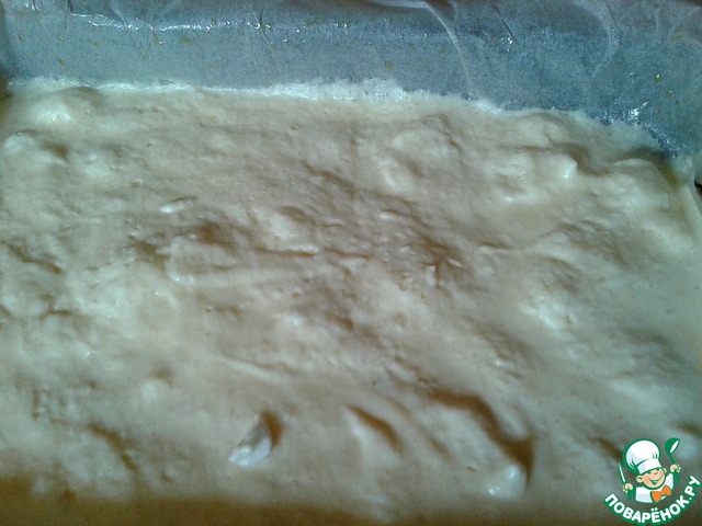 Противень выстлать бумагой и смазать маслом. Вылить смесь в противень и запекать в духовке 180 гр 15-20мин.