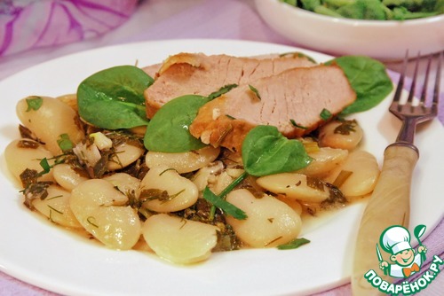 | Нежная фасоль с кремовой структурой является отличным гарниром к стейку, прожаренному по вашему вкусу. |