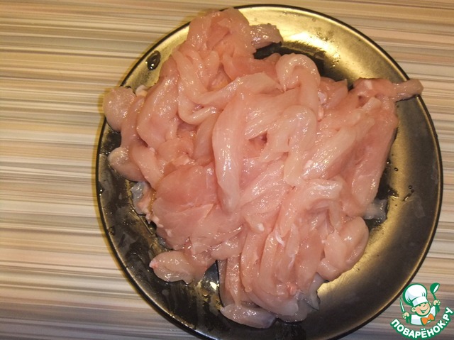 Филе нарезать соломкой (удобнее если филе помороженное)