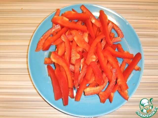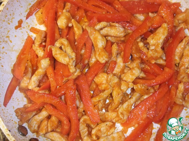 Точно также жарим перец (при желании модно добавить немного перец чили)