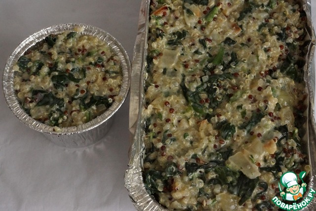| Уже наверно всем известно что питательная ценность киноа очень высока. По содержанию белков и незаменимых аминокислот это растение не имеет себе равных. Для вегетарианцев оно вполне способно заменить животные источники белка. Киноа богато жирами и клетчаткой и надолго дает чувство сытости. Мы тоже полюбили эту и крупу и я с удовольствием предлагаю вам рецепт запеканки из киноа со шпинатом. |