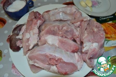 Натереть приправами, чесноком, солью. И дать постоять еще часа полтора.