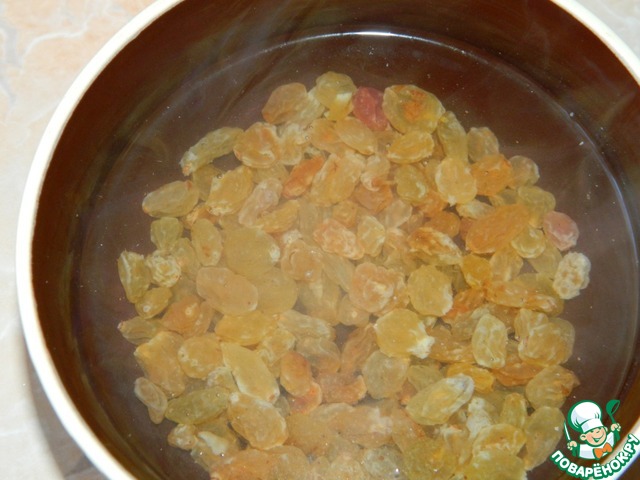 ... изюм заливаем кипятком на 5-10 минут.