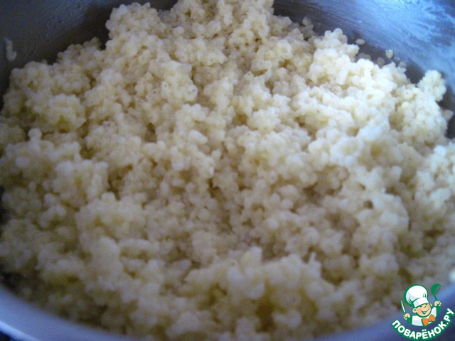Залить пшено двумя стаканами воды и варить 20 минут. Затем снять с огня и отставить.