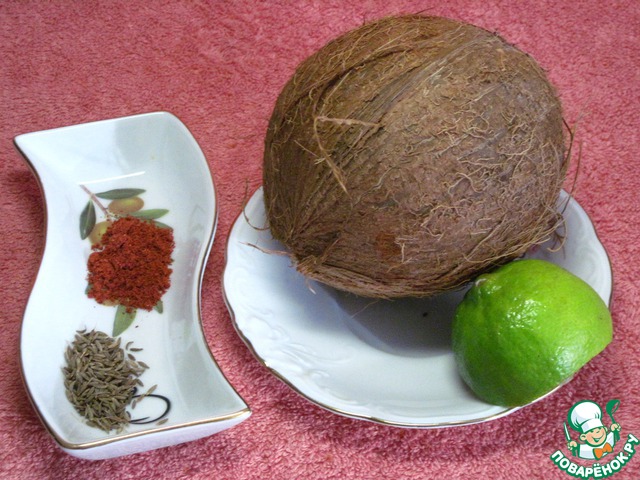 Приготовить кокос, половинку лайма, семена зиры и острый красный перец.